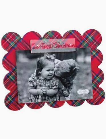 Celebrate your first Christmas together with this elegant acrylic frame, designed to capture and display your cherished memories. The magnetic tartan frame showcases a charming scallop edge, adding a touch of festive flair to your holiday decor. The layered acrylic sentiment magnet securely holds a 4" x 6" photo, ensuring your special moment is beautifully presented. With its convenient easel back, this 6" x 8" frame can be easily placed on any tabletop or mantel, making it a perfect addition to your seasonal decorations. Crafted from high-quality acrylic, this frame offers durability and a sleek, modern look that complements any home style. Ideal for gifting or personal use, it serves as a timeless keepsake to commemorate your first Christmas together.