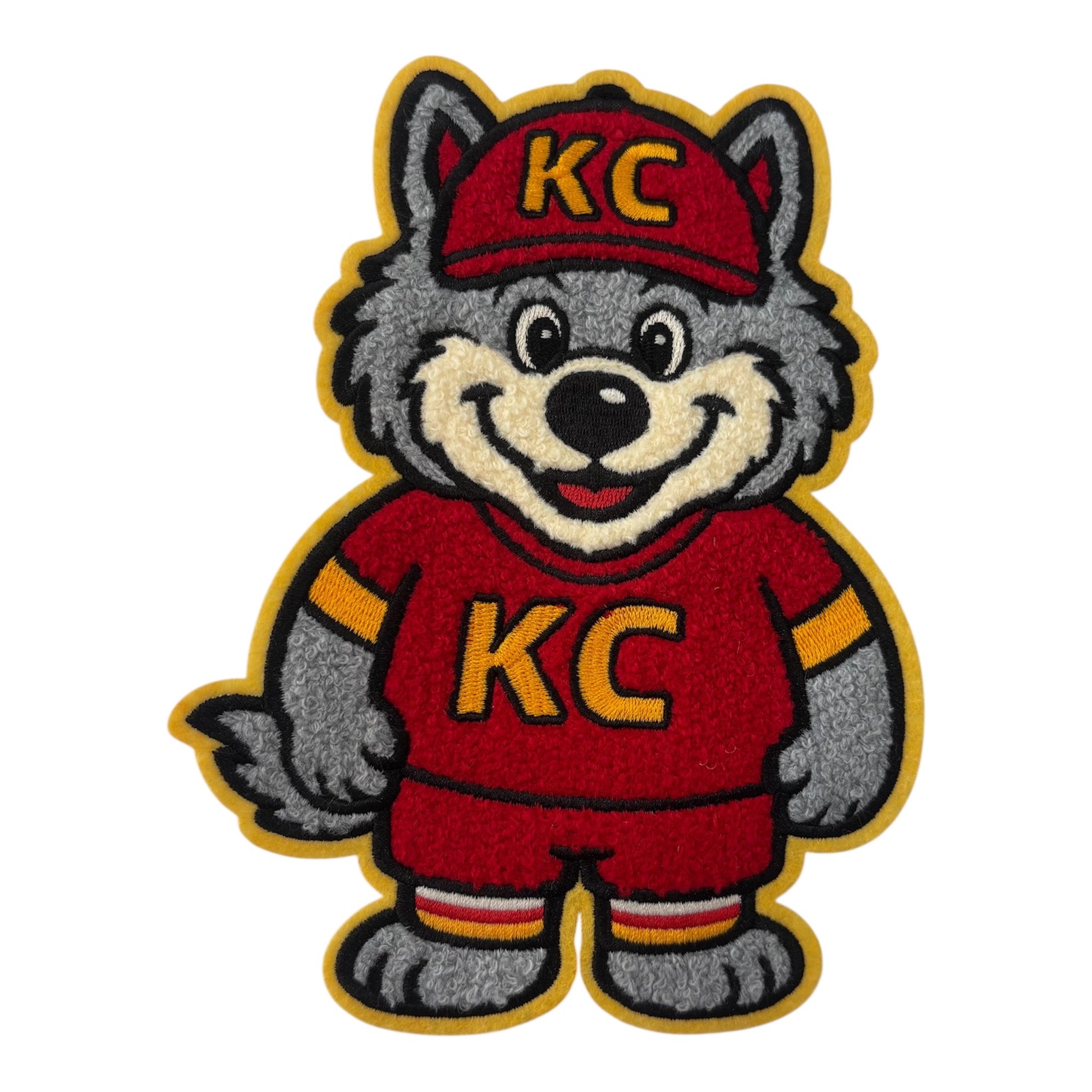 Wolf Patch Celebrate your little one's wild side with this striking chenille patch featuring a bold wolf mascot design. Perfect for customizing jackets, backpacks, or nursery décor, this embroidered patch brings character and charm to any space. The soft, textured chenille material adds dimension and durability, making it an ideal keepsake for fans of nature-inspired themes. Whether displayed in a nursery or worn proudly, this wolf design captures the spirit of adventure and strength that resonates with young explorers.